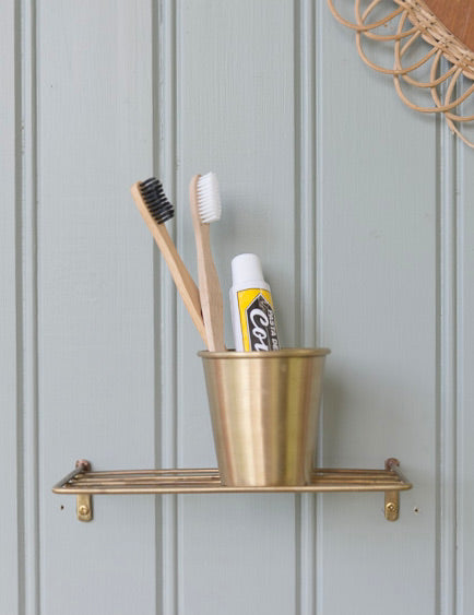 A compact shelf hand-woven in sturdy brass wire. Let your organizational zeal continue as these are perfect for keeping anything from spices to apothecary items at-the-ready. This item is hand-made and each shelf will exhibit its own character. Variations will occur in the texture of this hand-made item. Four screws are included, but it's important to know what material you are working with prior to installation. Ask your contractor or friendly hardware store associate if you are unsure as you may need different screws.