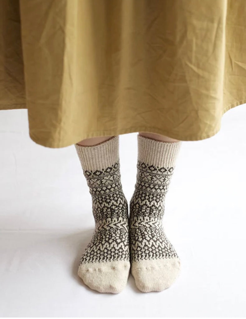 Wool Jacquard Socks: Oatmeal